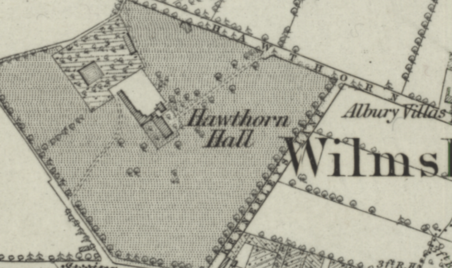 Hawthorn Hall in Wilmslow was once said to be haunted by the ghost of Leigh Page, a lawyer believed to have unfairly gained possession of the estate. Legend claimed that at his funeral the six black horses pulling his hearse sweated under a supernatural burden, and that his body was later found resting on a turf pillow in the family vault. His ghost was thought to guard hidden treasure within the hall. Two local men once attempted to confront the spirit, only to be tricked by pranksters and punished for damaging the wainscoting in their treasure hunt.