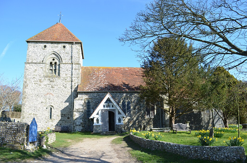 A grey-clad female phantom has been seen drifting beside the hedgerow on the lane leading to Jevington church before crossing the road and disappearing. Earlier in the twentieth century she was described as a medieval nun and was well known enough to be portrayed at a village fair. The figure has reportedly appeared several times in recent decades, once even addressed by a visiting vicar who mistook her for a living person.